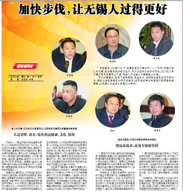 前些年,一條過年給村民發(fā)金條的新聞,讓一向低調(diào)的江陰長江村廣為人知。身為長江村當(dāng)家人的李洪耀代表說,省政府工作報(bào)告提出要多措并舉加快富民步伐,著力保障和改善民生,多年以來,先富起來的長江村一直在努力踐行富民宗旨。“以前是‘老三送’,送別墅、送黃金、送股份,從2013年起,我們開始‘新三送’,送健康、送文化、送保障,提升村級(jí)公共服務(wù)惠民水平,讓村民富口袋更富腦袋,物質(zhì)生活、精神生活質(zhì)量都有明顯提升。”